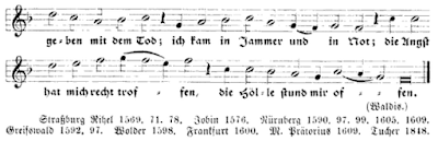 Here is my translation of the psalm paraphrase, “Von Herzen dank ich meinem Gott” (Burkard Waldis, d. 1556), based on Psalm CXI, Confitebor tibi Domine, with title “Psalm of thanksgiving for the manifold benefaction and grace of God, and the redemption through Christ.” The Mixolydian melody by Waldis follows the relatively compact meter 87.87.87.67. I give it transposed down a quint and with a slight variation from Zahn’s form of the slurring in the penultimate line.